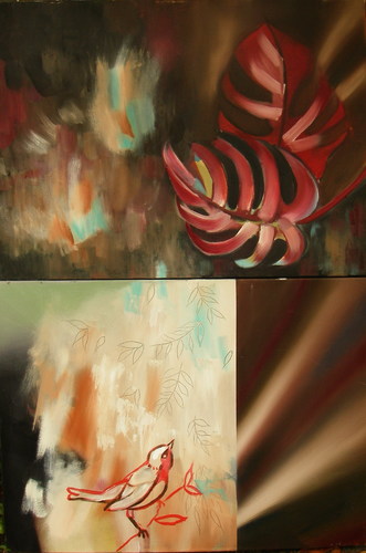 My use of paint is a juxtaposition of rawness with refinement, the gross and the subtle. I use plants and trees that are native to Vancouver Island, sometimes combined with tropical species, to convey the exotic wonder of this rainforest, island paradise.