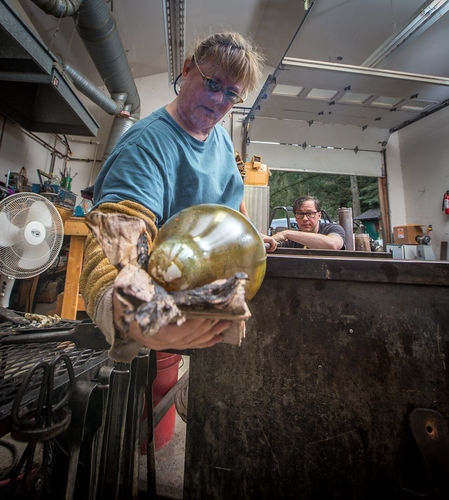 Lisa Samphire, Canadian borne began her glass blowing career in 1985. Since that time she has produced a diverse body of work, which includes private and public, sculptural and functional pieces. Over the years she has been recognized and applauded for her glasswork through the receipt of various awards, scholarships, teaching appointments and commissions.