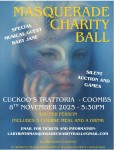 The Labyrinth Masquerade Charity Ball will be a magical evening at Cuckoo Trattoria in Coombs on Saturday , November 8 th , starting at 5:30 pm . Enjoy dinner,dancing, games, silent auction and live music by BABY JANE,all in support of BC Women's Health Foundation and the Sea Wolves Men's Cancer Pack.tx $80. Contact labyrinthmasqueradecharithball@gmail.com